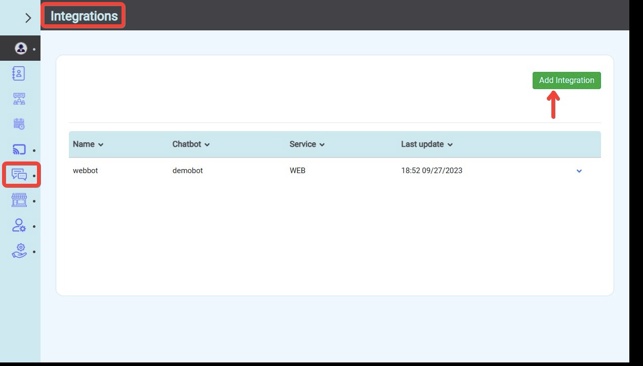 A Promptchat‑fiókjában lépjen az Integrációk menüpontra.