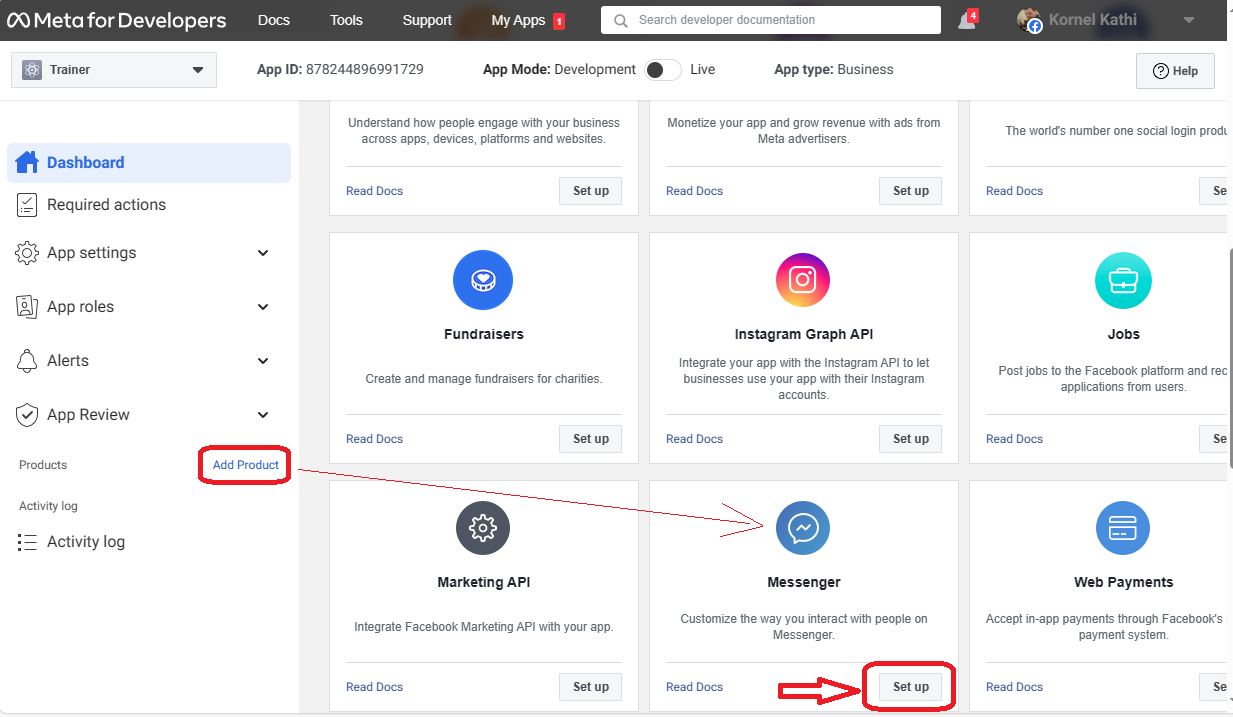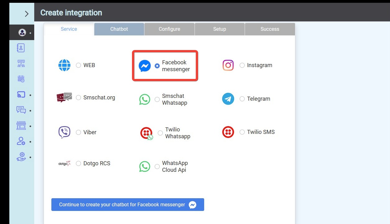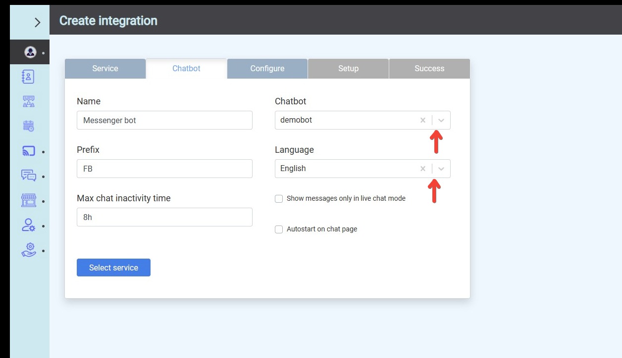 - Létrehozott chatbot (az a chatbot, amelyet a Facebook integráció során szeretné használni)