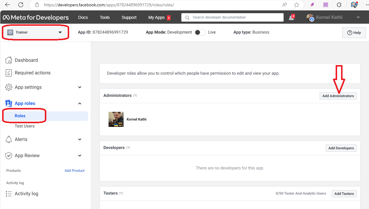 További adminisztrátorokat is hozzáadhat az alkalmazásához.