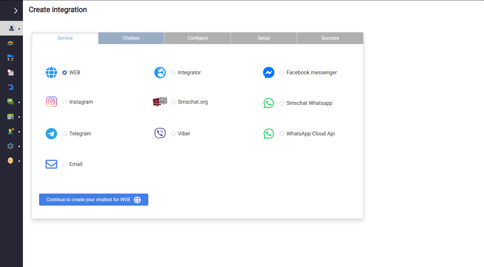 A Promptchat‑fiókjában, az Integrációk menüpontban, válassza a WEB opciót