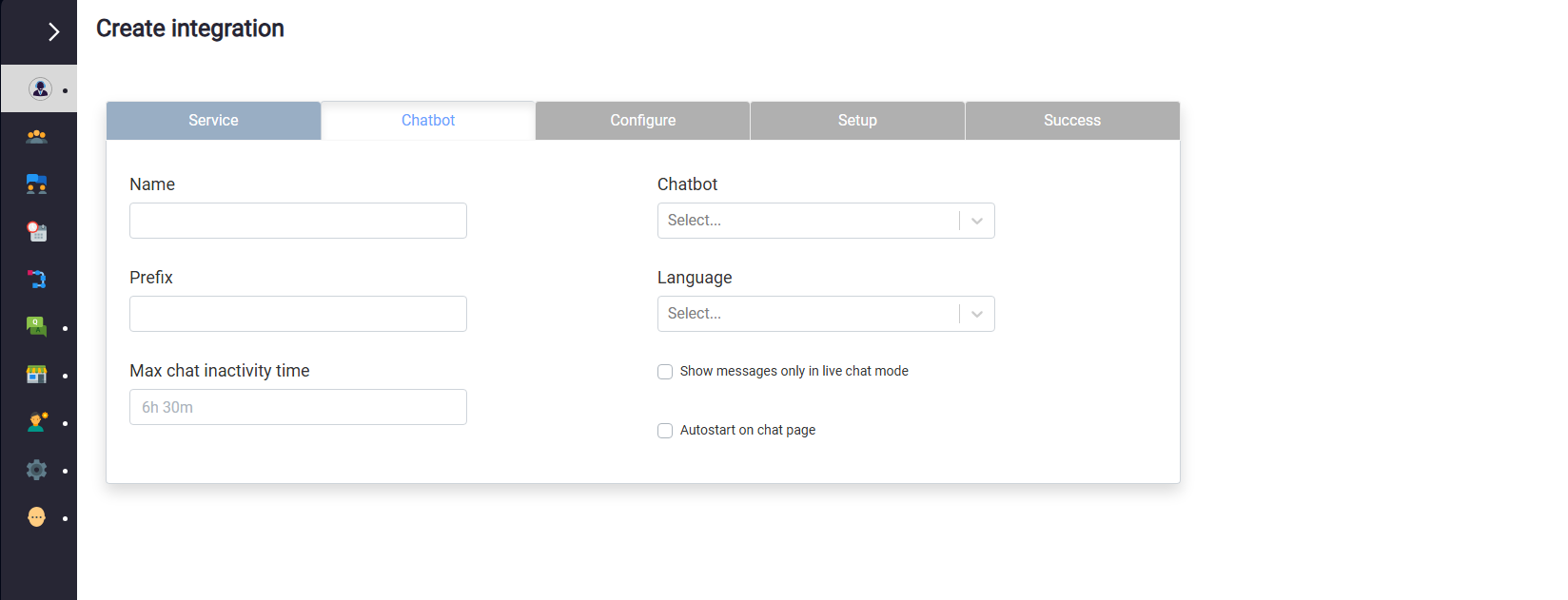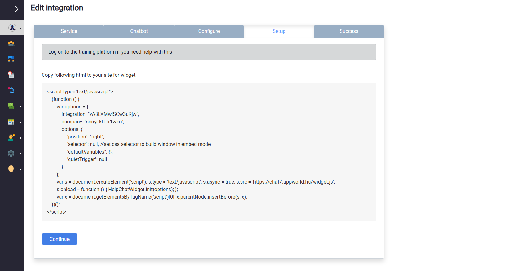 Adja meg a kért adatokat, a nyelvet és a chatbot-ot