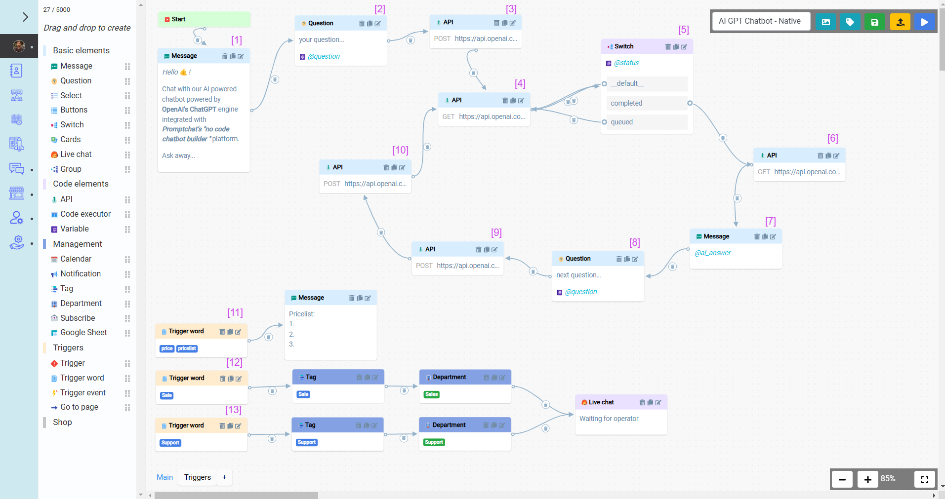 GPT Konfiguráció Chatbot API blokkokkal