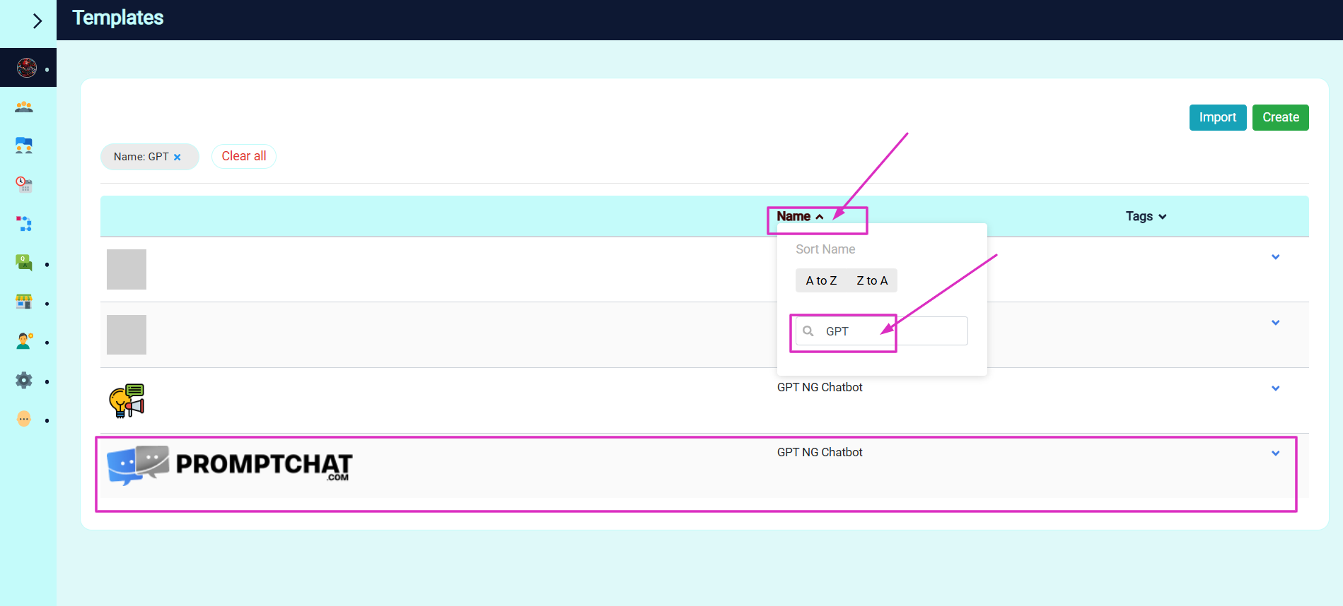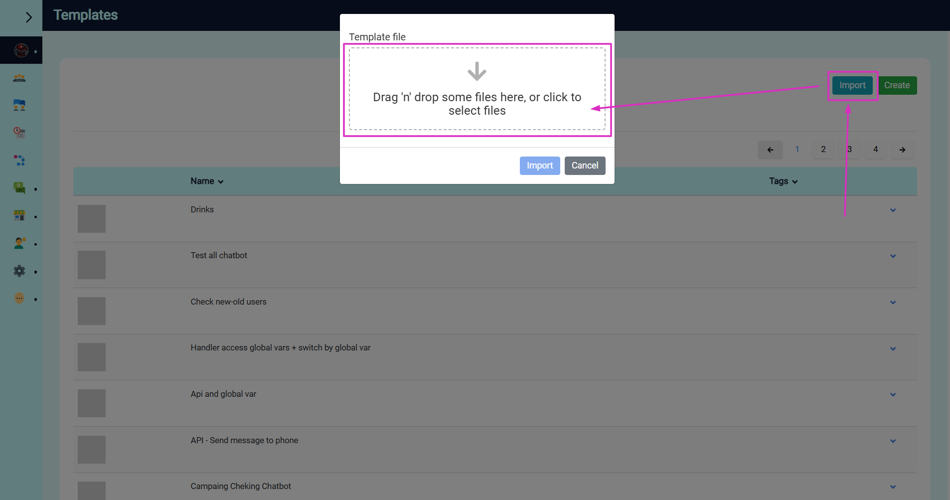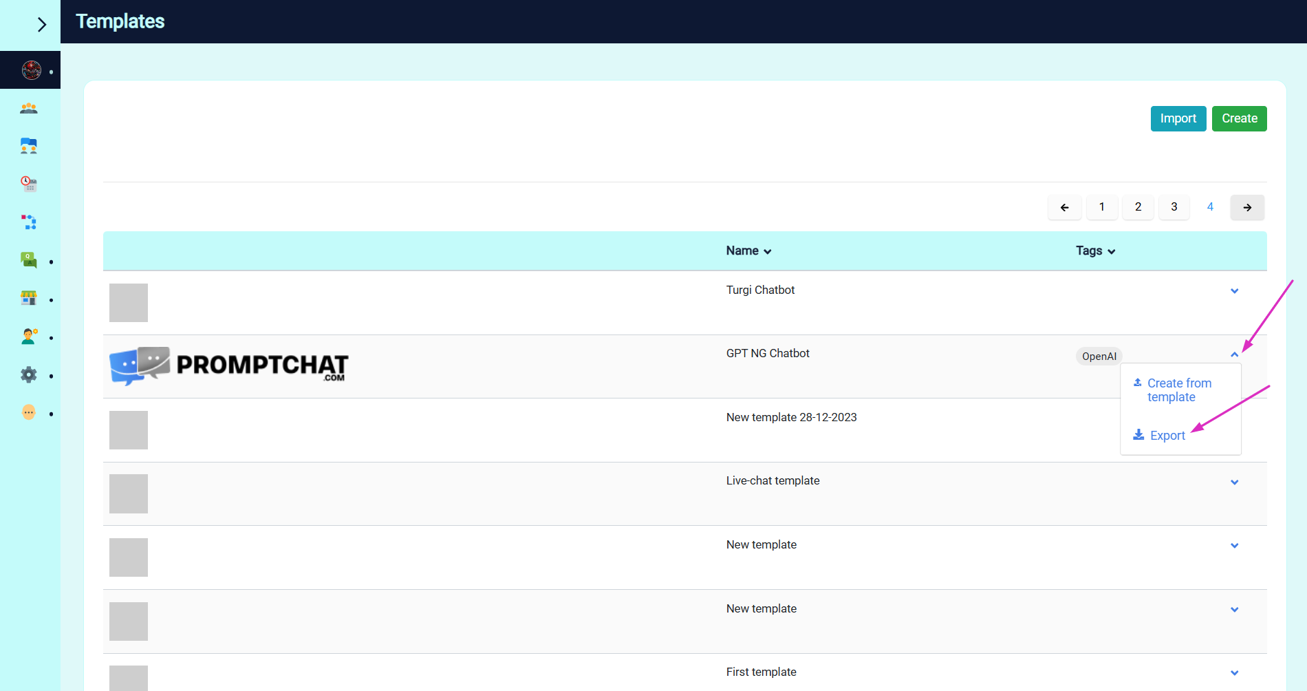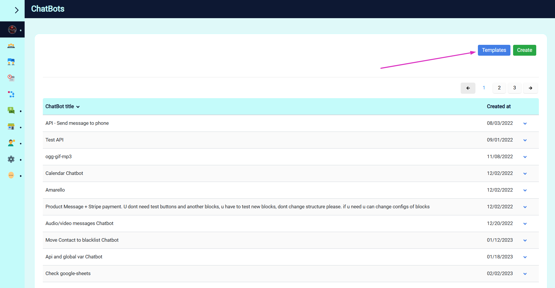 - Go to the "Chatbots" page, then open the "Templates" option.