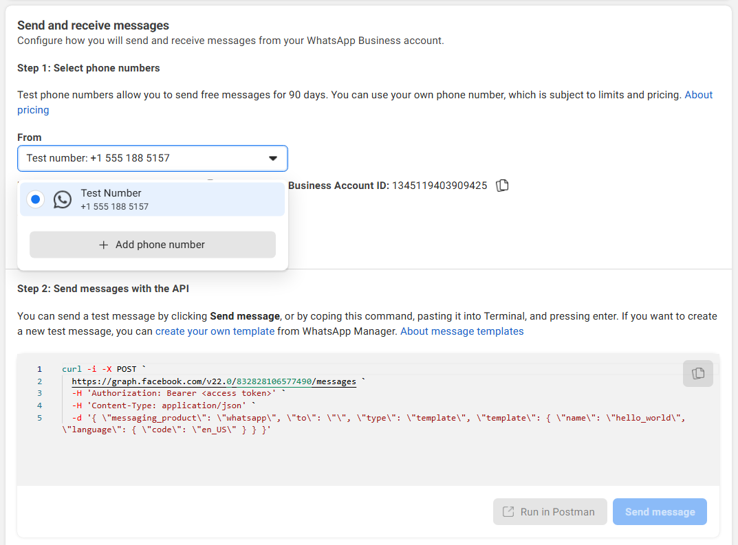 - Under the "WhatsApp" section, in the "API Setup" submenu, add a phone number that is not currently registered with the WhatsApp application.