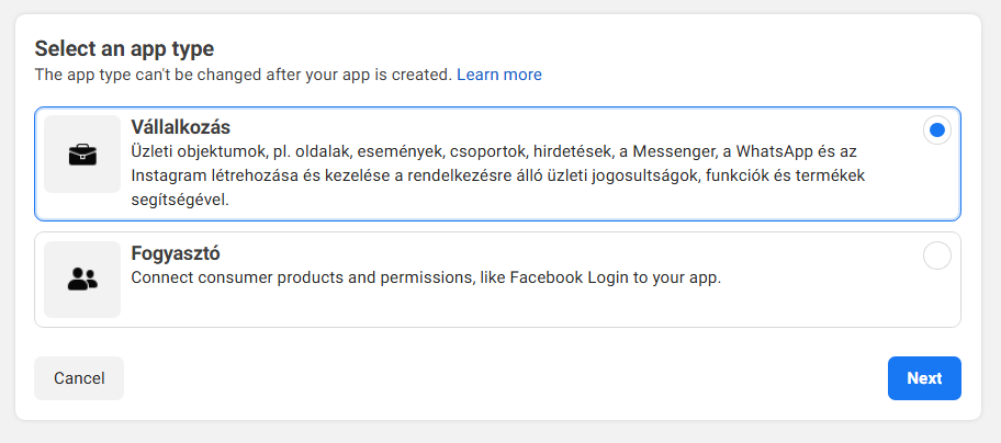 - Select an app type: "Business"