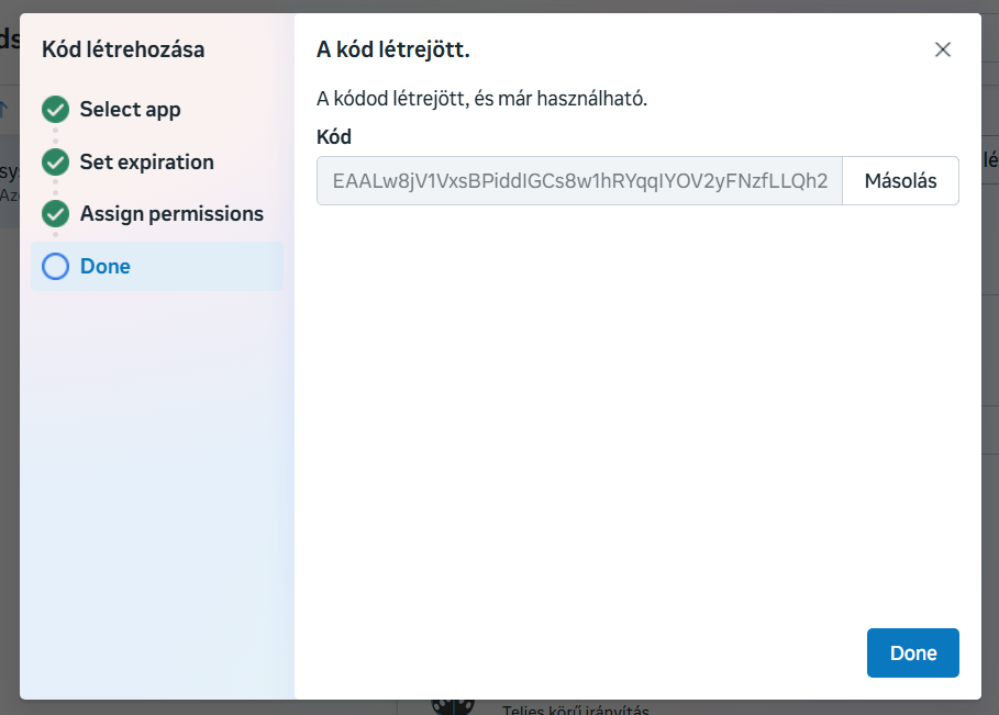 - Click on the "Generate token" button and follow the steps. This will create the identifier key (token) associated with the user.