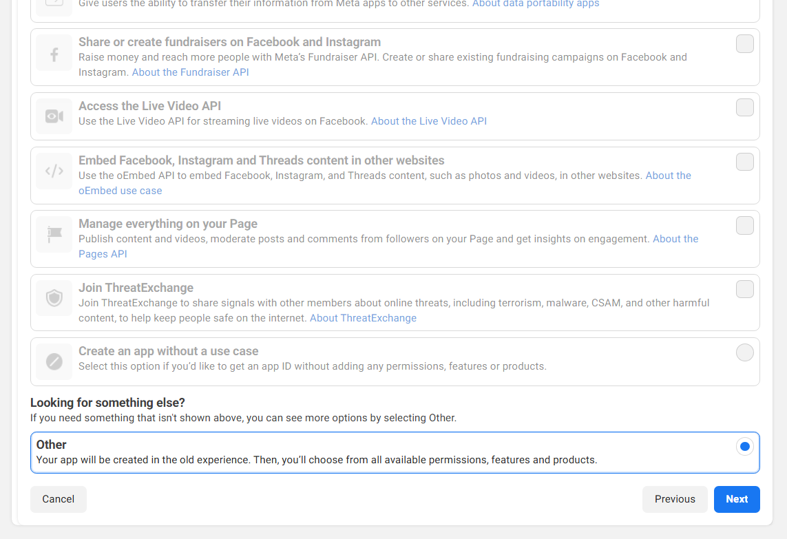 - On the Add use cases page, select the "Other" option