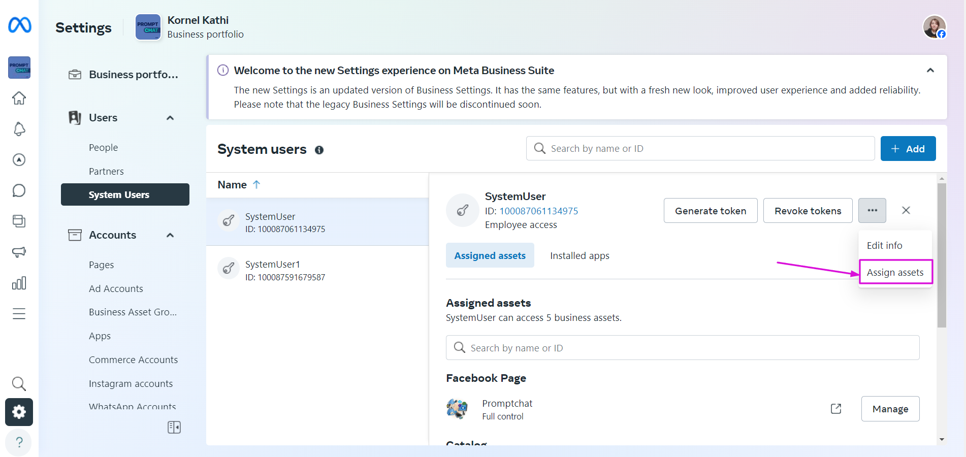 Assigning Access to the System User