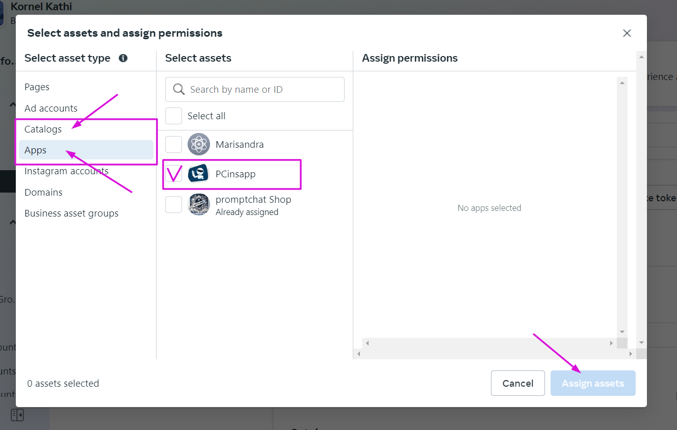 At this point, after saving, it is recommended to refresh the browser tab (F5 key or the browser's refresh option), because the Facebook interface does not always update the above assignment automatically, and the next step may not be completed otherwise.